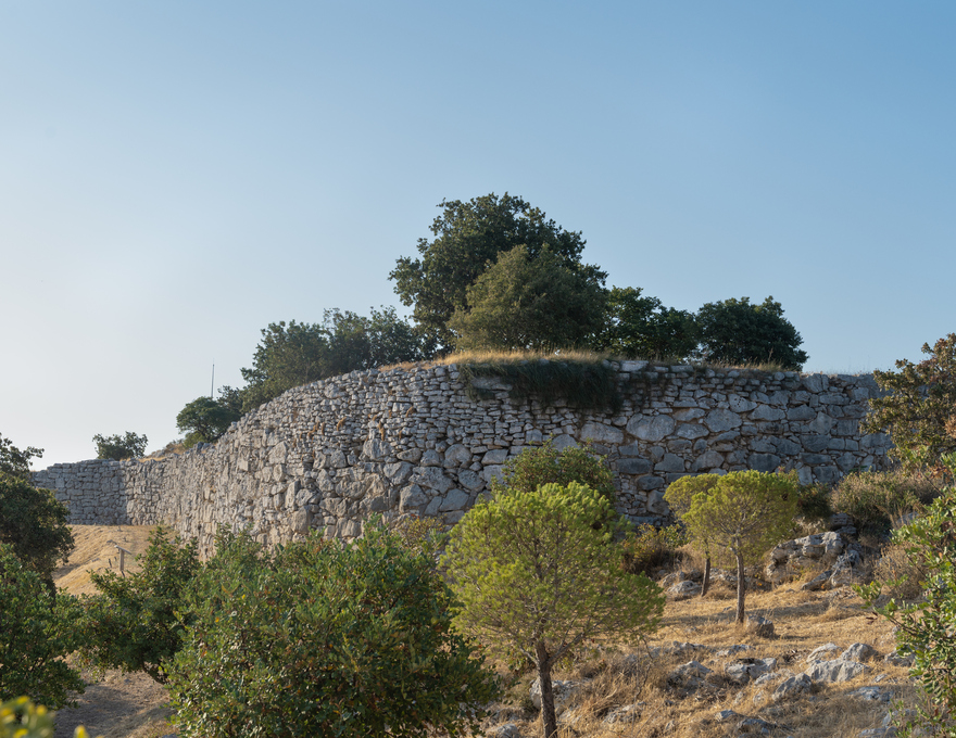 Η οχύρωση εκτιμάται ότι οικοδομήθηκε πιθανότατα γύρω στο 1300 π.Χ. και προστάτευε τις τρεις πλευρές του λόφου, καθώς η νοτιοδυτική του, ως απόκρημνη και περιβαλλόμενη από λίμνη, διέθετε φυσική οχύρωση. Τα τείχη του κάστρου, που ήταν κυκλώπεια, υπολογίζεται ότι είχαν περίπου 290 μέτρα μήκος, 8,5 τουλάχιστον μέτρα ύψος και 5 μέτρα πάχος, ενώ, κατά τη μυθολογία, χτίστηκαν από τον Ηρακλή και τα χρησιμοποίησε ως ορμητήριό του όταν πολεμούσε τον Αυγεία.